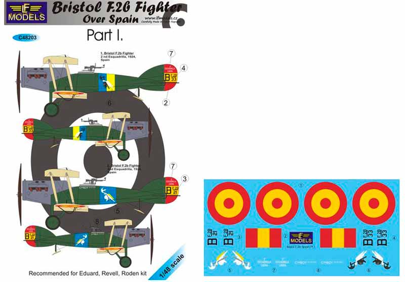 Calcas a escala 1/48 de LF Decals para el Bristol Fighter en servicio en España.