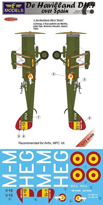 Calcas a escala 1/72 de LF Model para el DH.4 en servicio en España.