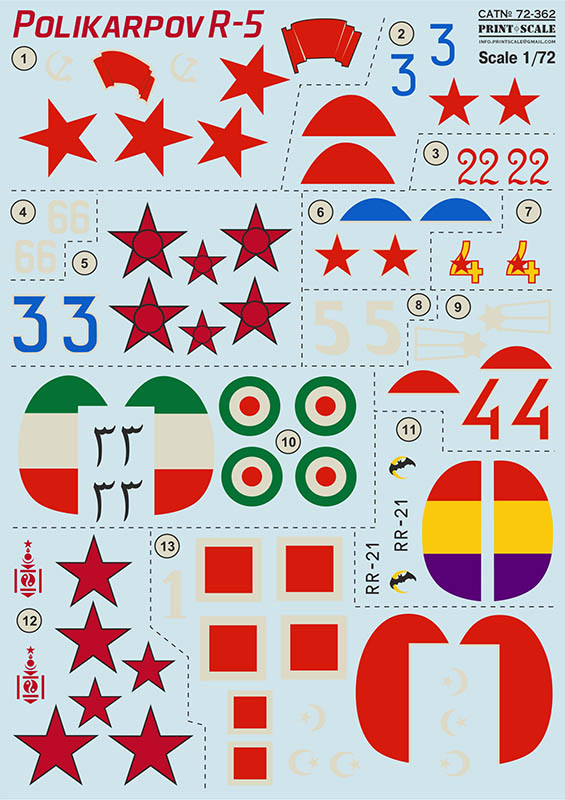 Calcas a escala 1/72 de print Scale para Polikarpov R-5.