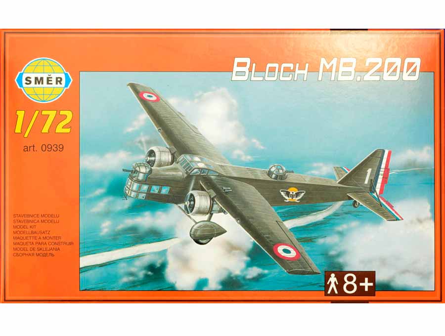 Maqueta a escala 1/72 de Smer del Bloch MB-200. Contiene calcas para 3 aparatos. El avión voló en las filas de la aviación Republicana.
