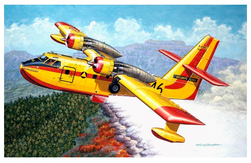 El Canadair CL-215 es un avión anfibio diseñado específicamente para misiones de lucha contra incendios, aunque también se ha utilizado para patrullas marítimas y misiones de búsqueda y rescate. Es especialmente conocido por su capacidad de recoger agua directamente de lagos o embalses y soltarla sobre incendios forestales.