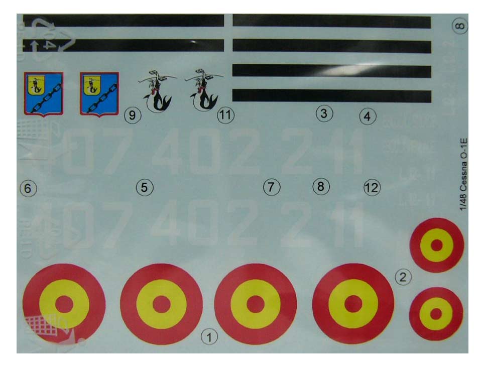 Calcas a escala 1/48 de LF Model para la Cessna O-1E Bird Dog del EdA. Contiene 2 opciones.