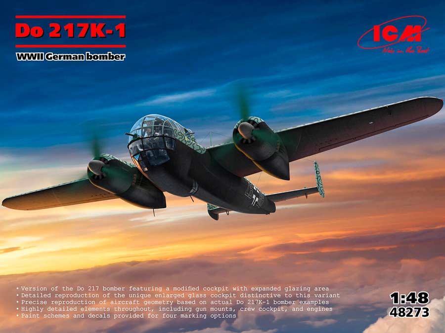 Maqueta a escala 1/48 del Dornier Do 217 K-1 de ICM. Nuevo molde. Contiene calcas para cuatro aparatos.