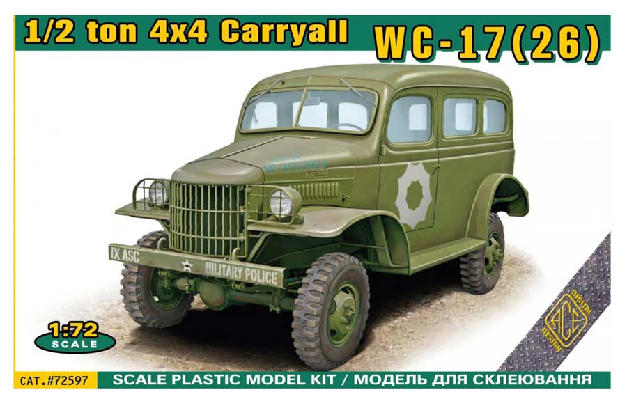 Maqueta a escala 1/72 de ACE del Dodge 1/2 ton 4×4 Carryall WC-17(26). Nuevo molde. Contiene calcas para tres vehículos.