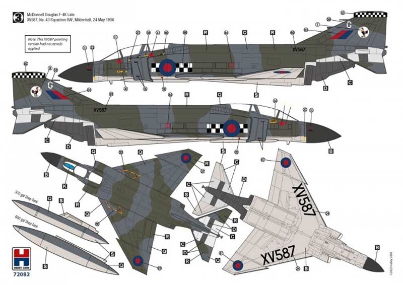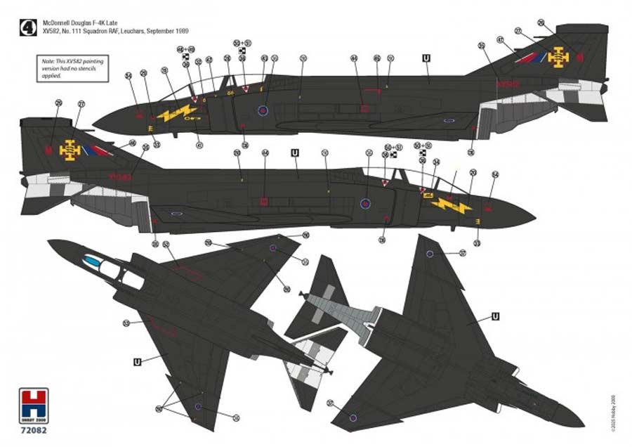 Maqueta a escala 1/72 de Hobby 2000 del F-4K Phantom FG.1. Molde original de Fujimi. Contiene mascarillas y calcas para cuatro aparatos.