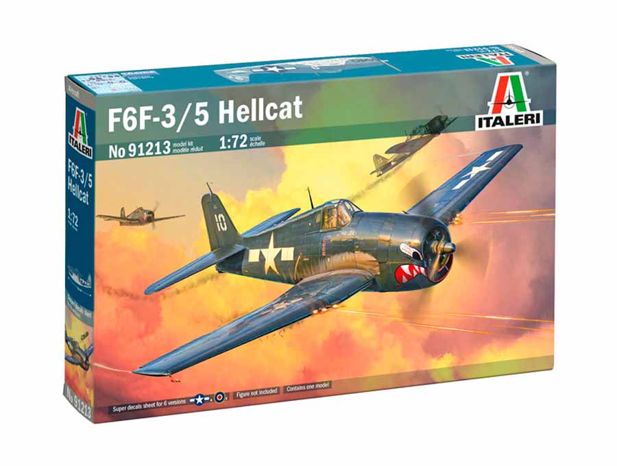 Maqueta a escala 1/72 de Italeri del F6F-3/ 5 Hellcat. Contiene calcas para seis aparatos.