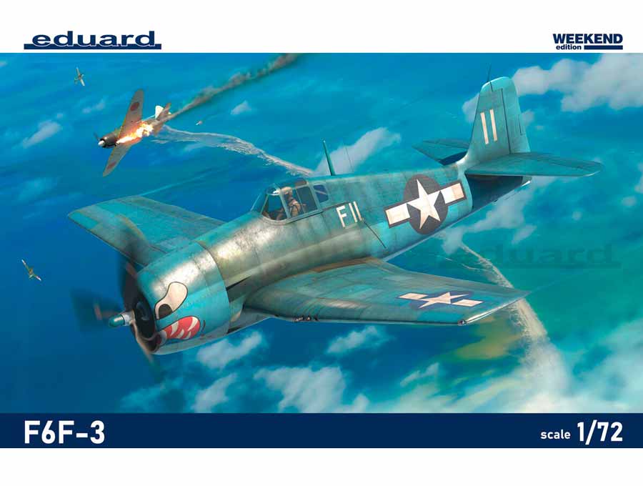 Maqueta a escala 1/72 de Eduard del F6F-3 Hellcat en edición Weekend. Contiene calcas para 4 aparatos.