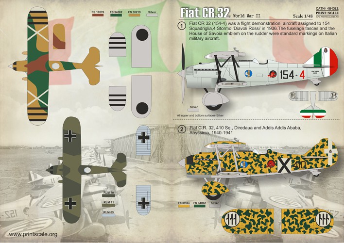 Calcas a escala 1/48 para el Fiat CR32 de la marca Print Scale.