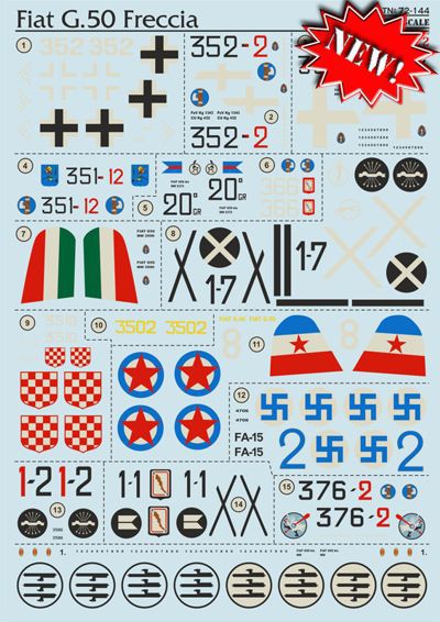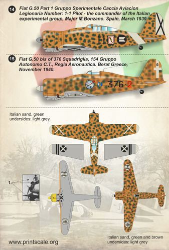 Calcas a escala 1/72 para el Fiat G.50 de la marca Print Scale.