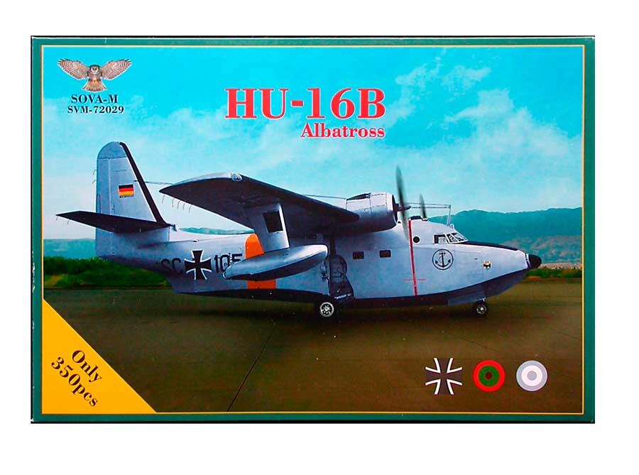 Maqueta a escala 1/72 de SOVA-M del HU-16B Albatross. Contiene mascarillas y calcas para 3 aparatos, uno de ellos del SAR español.