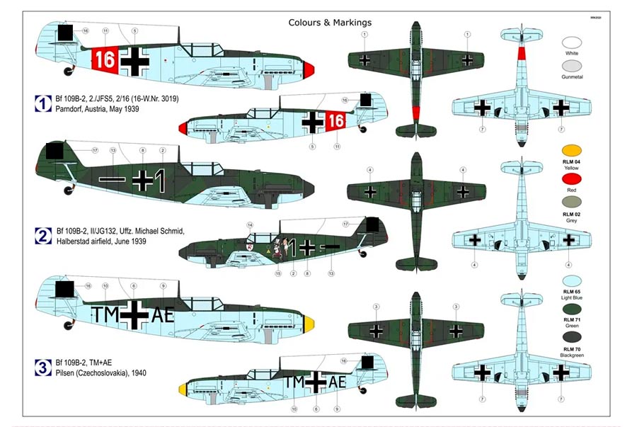 Maqueta a escala 1/72 del Bf 109 B de AZ Model. Nuevo molde. Contiene calcas para tres aparatos. y mascarillas.