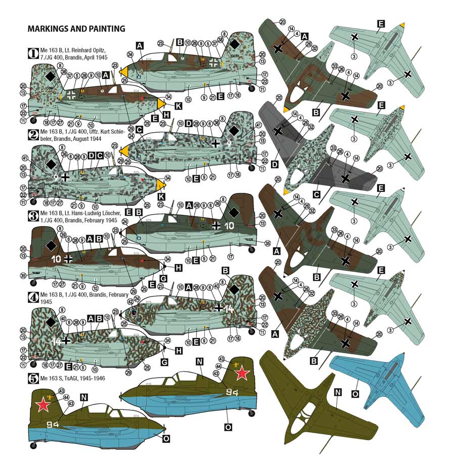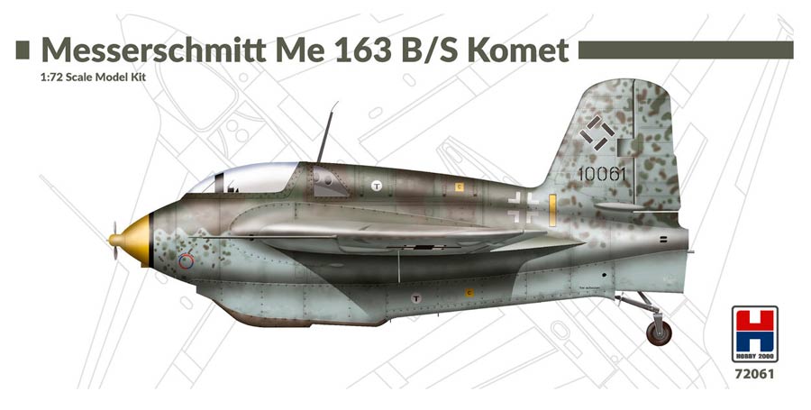 Maqueta a escala 1/72 de Hobby 2000 del Me-163 Komet. Molde original de Academy. Contiene mascarillas y calcas para 5 aparatos.
