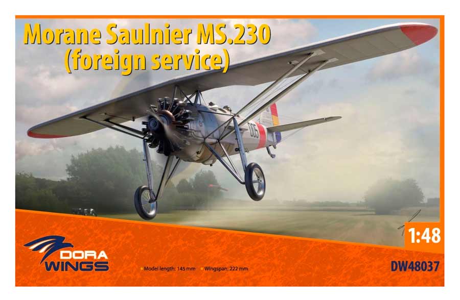 Maqueta a escala 1/48 de Dora Wings del Morane Saulnier MS.230. Nuevo molde. Contiene fotograbados y calcas para 3 aparatos. Uno de ellos republicano.
