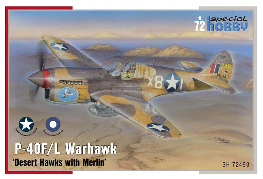 Maqueta a escala 1/72 de Special Hobby del P-40 F/ L Warhawk. Reedición de la maqueta. Contiene un nuevo fuselaje. Contiene calcas para 3 aparatos.