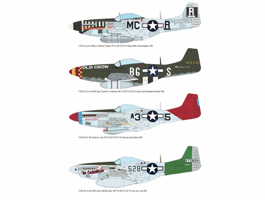 Maqueta a escala 1/72 de Eduard del P-51 D Mustang en edición Weekend. Contiene calcas para cuatro aviones.