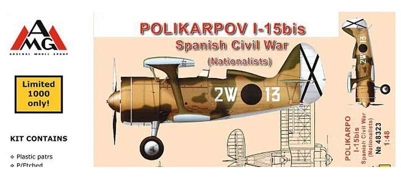 Maqueta a escala 1/48 de AMG del Polikarpov I-15 Bis. Contiene calcas para dos aparatos y fotograbados
