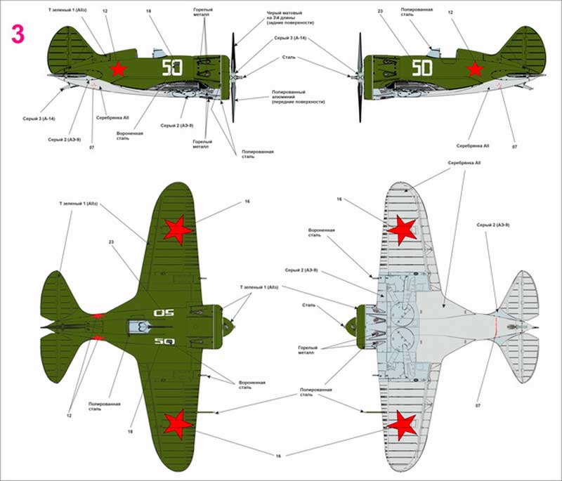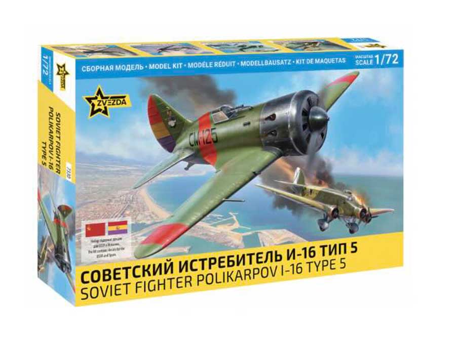 Maqueta a escala 1/72 de Zvezda del Polikarpov I-16 Tipo 5. Nuevo molde. Contiene calcas para tres aparatos, entre ellos uno republicano.