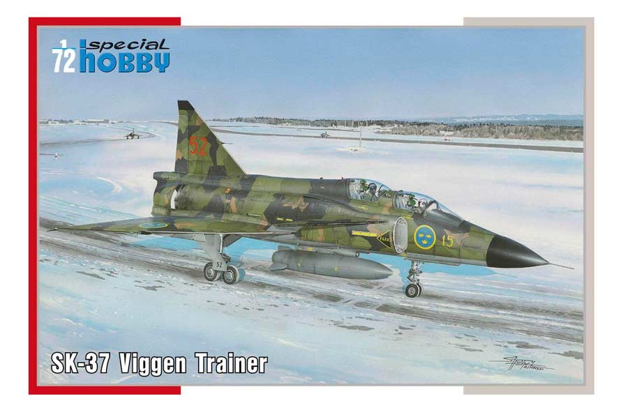 Maqueta a escala1/72 de Special Hobby del Saab SK-37 Viggen de entrenamiento. Contiene calcas para 3 aparatos.