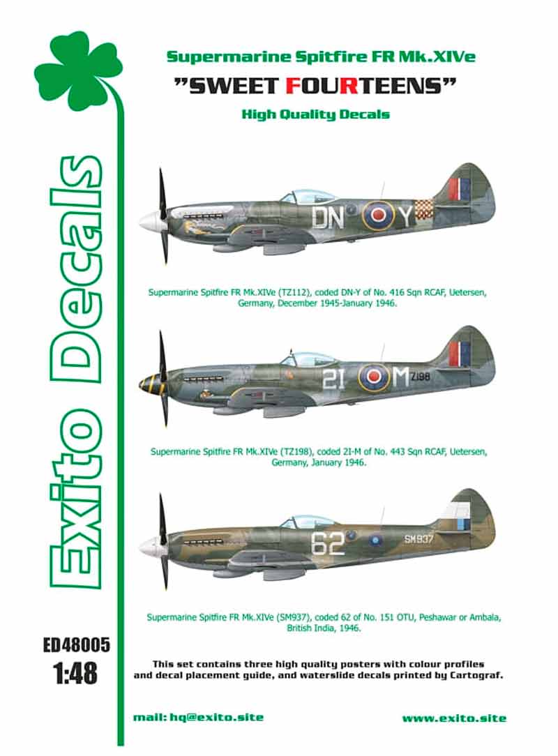 Calcas a escala 1/48 de Exito Decals para los Spitfire LF MkVb, VIII y IXe. Calcas para 3 aparatos.